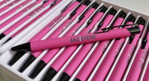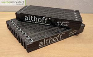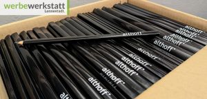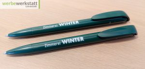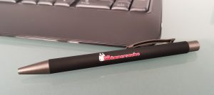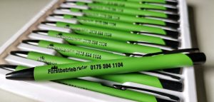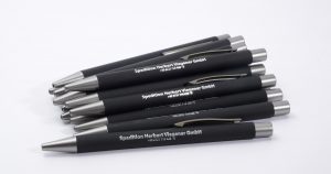 Bedruckte und Laserbeschriftete Kugelschreiber, Ansteckpins, bedruckte Zollstöcke, Bleistifte, Feuerzeuge, Bannerfahnen, Trinkgläser, Tassen, Schlüsselanhänger, Stempel, Papierclips, uvm